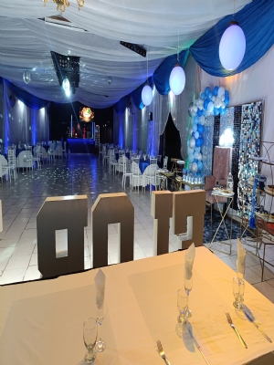 Nuestros Servicios Mesa principal ornamentada con telon led, arco y pilares de globos, estructura de candy bar vintage. 3 horas y media de fiesta, te damos una hora previa y media hora posterior. Sonido e iluminación profesional, animación y protocolo , dj, videos musicales en dos pantallas gigantes, tik tok y karaoke, anfitrión en puerta, mozas, personal de cocina ( con certificacion de manipulacion de alimentos), personal de limpieza en baños y Salón, invitación virtual e historia de vida, cocina equipada, te preparamos las pizzas y los panchos, te calentamos las empanadas, te cortamos y repartimos la mesa dulce y la torta. Asadores y canchita de fútbol al aire libre, mesas en sector de espacios verdes. Sector parque de juegos: personal responsable, tobogán gigante, pelotero inflable, pelotero estructural, toro mecánico, grúa de golosinas, dos kiddies, tejo, pool, videojuegos y máquinas recreativas, aro de basquet, tobogán y mucho más. MEDIOS DE PAGO Efectivo, tarjetas de crédito y débito, mercado pago, transferencias bancarias. Área protegida por Sade y seguro de responsabilidad civil .