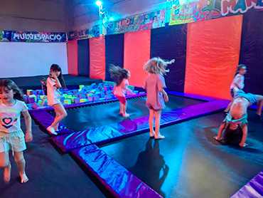 Bienvenidos al Salón Cumpleaños Infantiles! 🎈 Descripción del salón 🎈 Zona de Trampolines: Aquí la adrenalina se eleva a nuevas alturas. Los niños saltan y juegan en esta amplia área repleta de Camas elásticas, rodeados de redes de seguridad para que puedan divertirse libremente. Los colores vibrantes y la iluminación le dan un toque dinámico que hace que la experiencia sea inolvidable. Área de Espuma: Justo al lado de los trampolines, los chicos pueden saltar a una piscina llena de suaves bloques de espuma. Perfecta para aterrizajes seguros después de las acrobacias o simplemente para disfrutar brincando de un lado a otro. ¡Un espacio donde cada salto se convierte en una aventura! Muro de Escalada: Los más aventureros pueden desafiar sus habilidades en el colorido muro de escalada, diseñado para que los pequeños trepen de forma segura mientras desarrollan su fuerza y confianza. Además, el suelo acolchado asegura que cada intento sea completamente seguro. En Marlova Multiespacio, cada rincón está pensado para maximizar la diversión y la seguridad de los más pequeños, haciendo de tus fiestas un evento memorable lleno de risas, movimiento y emociones. ¡Te esperamos para vivir momentos únicos! Nuestro Servicio Incluye Dos horas de Salón, para 40 adultos y 40 niños. -En caso de necesitar ampliar la cantidad de invitados se cobrará un adicional. (Capacidad: para 200 personas) El precio TAMBIÉN incluye: Servicio de mesa, servilletas, agua fria, equipo de mate, etc. Atracciones: Camas de salto, Muros para escalar, Basquet Jump, Guerra de Gladiadores, Plaza Blanda, etc. Staff: Responsable General, Personal de cocina, Coordinación de Juegos. Consulta otros Combos Consulta por más combos y opciones para tú cumple ¡Recordá! Consultar disponibilidad para tú evento y reservar la fecha con anticipación.