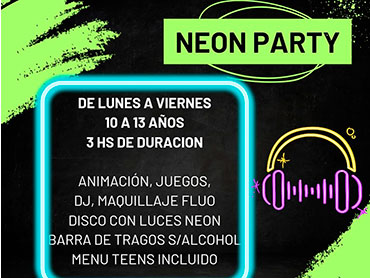 PROMO TEENS Te ofrecemos todos estos servicios Invitaciones virtuales 3:00 hs de duración de Lunes a Viernes 15 adultos y 25 chicos Menú teens: pizza party y súper pancho. Snacks, Barra de tragos sin alcohol Camareras Animación Maquilla Fluor Vajilla para Lunch Proyector Mini Disco con Luces Led Servicio de café para los adultos Adicionales: Robot Led Toro Mecánico Cabina de Fotos Importante!: El pelotero infantil no se habilita para esta propuesta. Válido de Lunes a Viernes.