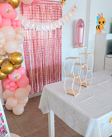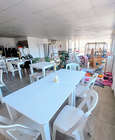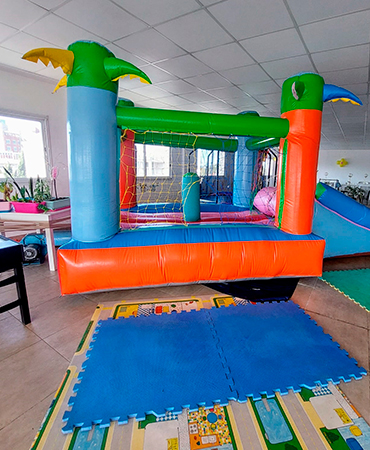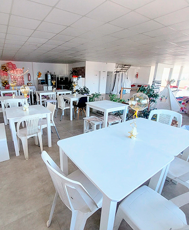 Bienvenidos al Salón Cumpleaños Infantiles! 🎈 Descripción del salón 🎈 Zona de juegos infantiles: Un espacio lleno de color y creatividad, que incluye una piscina de pelotas decorada y un adorable peluche que invita a los más pequeños a sumergirse en la diversión. También cuenta con una original carpa tipi, perfecta para que los niños disfruten de un rincón acogedor lleno de fantasía. Mesas y área de descanso: Un sector con mesas blancas y sillas cómodas, ideal para que los adultos puedan relajarse y compartir mientras los más chicos se divierten. Las plantas distribuidas por el salón le dan un toque natural que realza el ambiente fresco y luminoso. Juegos interactivos: El salón también ofrece entretenimiento para niños de mayor edad con una mesa de tejo y un metegol, asegurando que haya diversión para todas las edades. Cada detalle está pensado para maximizar la experiencia recreativa. Inflable y más juegos: Además, se destaca un colorido inflable que promete horas de alegría y risas para los más aventureros. Este espacio es ideal para liberar energía y disfrutar en grande. En ACTIVOS SUM, cada rincón está diseñado para crear una experiencia única en tus eventos, asegurando que tanto grandes como chicos se lleven los mejores recuerdos de su celebración. Juegos para los Chicos Inflable, Cama elástica metegol y Tejo Juegos de madera : Carpita, casa cohete, puesto verduras, cocina, heladerita y cama elastica. Mini cancha fútbol Servicios incluidos 13 mesas cuadradas para adultos 35 asientos para adultos 2 mesas grandes rectangulares para niños (para 20 niños aproximadamente) zona de preparación lunch heladera horno eléctrico anafe eléctrico equipo de sonido tarjeta virtual para invitados Consulta otros Combos Consulta por opciones para tú cumple Este valor no incluye animación y servicio de cocina (camarera -vajilla), pero se puede adicionar si lo necesitas! ¡Recordá! Consultar disponibilidad para tú evento y reservar la fecha con anticipación.