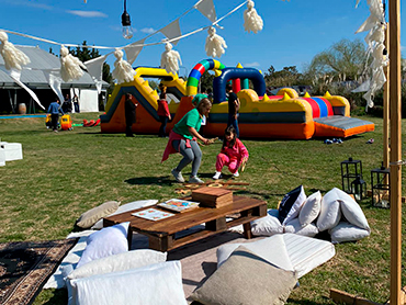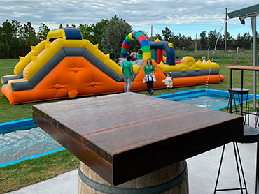 Un Salón con 3 espacio exclusivos 5000 m2 de parque 300 m2 de galería cubierta 500 m2 de salón Cumpleaños Infantiles! Uso exclusivo del salón por 3 horas Pista de baile, proyector y pantalla Iluminación general y de pista Tres coordinadoras (1 cada 10 niños) Catering para 30 niños (hasta 8 años) snacks, sandwiches de jamón y queso, patitas de pollo, papas fritas y bebidas línea coca cola Dos inflables Mesa de ping pong y metegol Just Dance Toro mecánico (sólo niños) Tirolesa Plaza blanda (hasta 3 años) Mesas, sillas y mantelería completa para niños y adultos Cambiador de bebe Acceso y toilette para personas con movilidad reducida Grupo electrógeno Equipo de climatización Rooftop Cobertura médica / Urgencias / Seguro Responsabilidad Civil Además, vas a poder sumar a tú evento. Servicio Gastronómico con múltiples opciones Servicio de Parrilla y Planchas Juegos de Agua para Verano Momento Dulce Horas adicionales Bodas, XV años y Sociales También podes consultarnos por Bodas, 15 años, Corporativos y eventos sociales. Comunícate con nosotros y te brindaremos la información que necesitas. ¡Recordá! Consultar disponibilidad para tú evento y reservar la fecha con anticipación. TARIFAS y ADICIONALES