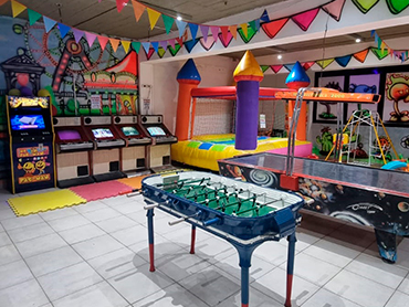 Bienvenidos al Salón Cumpleaños Infantiles! Nuestro Servicio Incluye SALA DE JUEGOS PARA NIÑOS y ADULTOS Castillo Infable Plaza Blanda y juguetes infantiles Saltarines Máquina de juego Árcades (5) Metegol ⚽ Tejo electronico Juegos infantiles mecánicos (2 Kidies) COCINA TOTALMENTE EQUIPADA Heladera Microondas Horno eléctrico Vajilla Bacha SANITARIOS Dos (2) Baños individualizados y equipados con los insumos necesarios LISTOS para su uso. 🚻 ADEMÁS... Mesas y sillas de Madera (70) 🪑 Manteleria Sistema de Sonido con música funcional 🔊🎶 Smart T.v de 65" Botiquín de primeros auxilios 🚑 WI fi 🛜 Limpieza y asistencia de persona incluida(1)👩🏻 Salón CALEFACCIÓNADO 🔥 Y totalmente decorado con caricaturas realizadas en pintura fluor 🔵🟢🟡 Invitaciones virtuales personalizadas MEDIOS DE PAGO Efectivo 💵 Tarjeta de débito 💳 Transferencias bancarias 💸 MODALIDAD DE USO Los turnos del evento serán de 4 HORAS : De Lunes a Jueves: turnos de 4hs (horario a convenir) Sábados y domingos: Primer turno: 14:00 Hs a 18:00 Hs Segundo turno : 19:00 Hs a 23:00 El salón se entrega media hora(30 min) antes de que comience el turno para su correcta preparación. Y existe una TOLERANCIA de 15 minutos una vez finalizado el turno para su posterior desalojo. HORAS EXTRAS Terminado los 15 minutos de tolerancia , se cobrará UNA HORA (1) EXTRA con un valor de $40.000. CAPACIDAD TOTAL Sesenta (60) invitados , entre niños y adultos. AGREGADOS SE PUEDE contratar servicios de entretenimiento ADICIONALES (payasos , foto cabina , gliter, etc). Mobiliario Candy Bar PROHIBICIONES Papel picado en piñatas y talco. En caso de usar estos productos , se deberá pagar un adicional de limpieza de $20.000. ATENCIÓN Para reservar la fecha, debes realizar un pago del 50% del total. Mientras que el resto del saldo lo podes abonar hasta el dia del evento. En caso de no poder realizar el evento en el día pactado , consultar disponibilidad para una REPROGRAMACIÓN. CANCELACIONES ⛔ NO realizamos reintegros de señas, por CANCELACIONES de TURNOS. Consulta otros Combos Consulta por más combos y opciones para tú cumple ¡Recordá! Consultar disponibilidad para tú evento y reservar la fecha con anticipación.