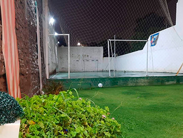 Cumpleaños Infantiles! Salón cerrado climatizado y espacio abierto. Los servicios incluyen: Invitaciones Virtuales. Capacidad máxima 40 adultos y 30 niños. 2 chicas en el servicio que ayudan a calentar y a servir la comida. Cocina equipada con heladera, horno, tetera eléctrica y panchera. Vajilla preferencial para los adultos y vajilla de plástico para los peques. Candy bar. Nuestros Juegos Cancha de fútbol Laberinto Cabina de fotos Castillo inflable Metegol Mangrullo Trepador Plaza blanda La cancelación del salón se realiza el mismo día del evento antes de comenzar. Ingresas media hora antes de que comience el evento para decorar/organizar. Consultá por nuestros servicios de comida, recreación y decoración.