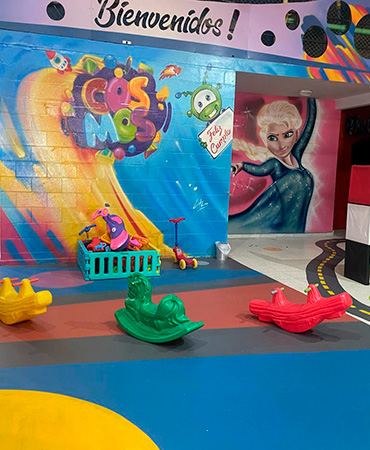 Cosmos es el único pelotero temático de General Pico. Conoce el cohete más grande de La Pampa, sala de maquillaje artístico y divertidos juegos de feria. Juegos de living de adultos para disfrutar cómodos de quienes más querés. Cosmos es tu universo infantil