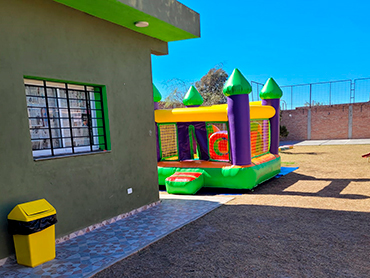 Bienvenidos al Salón Cumpleaños Infantiles! 🎈 Descripción del salón 🎈 En las imágenes se destaca un salón con mesas elegantes decoradas en tonos vibrantes de verde y amarillo, ideales para crear un ambiente festivo y acogedor. Además, contamos con un amplio pelotero de colores brillantes, donde los niños pueden disfrutar de momentos de pura diversión y aventura. En el exterior, un inflable multicolor promete horas de entretenimiento al aire libre, todo dentro de un entorno seguro y agradable. Croky Croky combina espacios cerrados y abiertos para que cada fiesta sea única y especial. ¡Te esperamos! Nuestro Salón incluye Pelotero estructural Pelotero para bebés Cama elástica Metegol Plaza Blanda Juegos didácticos Sapo Tobogan Patio parquizado Asador Cancha de futbol Equipo de música Mesas y sillas para 50 adultos y 30 niños Cocina con horno y microondas Pava eléctrica Internet Wifi y ahora Invitaciones Virtuales Consulta otros Combos Consulta por más combos y opciones para tú cumple ¡Recordá! Consultar disponibilidad para tú evento y reservar la fecha con anticipación.