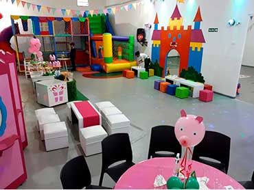 SALÓN y SERVICIOS Uso exclusivo del Salón por 3hs (más dos horas previas para la decoración) Super Laberinto - Pelotero Tobogan Inflable Plaza Blanda (0 a 3 años) con juegos Salón de Maquillajes Mini Cancha de Futbol 3 meses con mini puff para niños 5 mesas (con mantel) y sillas para 50 adultos Ambiente climatizado Música Funcional, No incluye DJ Servicio de Emergencia Médicas Seguro de responsabilidad Civil Limpieza del Salón posterior al evento Cocina provista de heladera y horno eléctrico (uso exclusivo para recalentar, no cocinar) Bebidas en consignación (Línea Pepsi) Servicio de 2 Mozos hasta 50 adultos Servicio de 2 Agentes Sanitizantes para los niños. Presiona el botón Consultar Promo y te responderemos a la Brevedad.