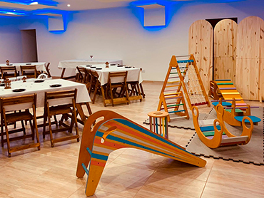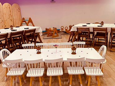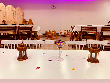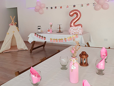 Cumpleaños Infantiles! Sillas y meses Vajilla (ver detalle “Nuestra Cocina”) Mantelería blanca Aire acondicionado frío/calor Iluminación Led Wifi Smart Tv Invitaciones Virtuales Limpieza de salón Espacio para los peques Casita Infantil Sillas y mesitas para niños/as