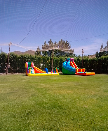 Nuestra prioridad es brindarles seguridad y confianza a quienes nos visitan y requieren de nuestro servicio, por lo que contamos con cámaras de seguridad y seguro médico, dando continuidad al uso del alcohol etílico al 70 % como medida de desinfección; como así también las habilitaciones correspondientes que hacen al disfrute familiar seguro. Cumpleaños infantiles / adultos- baby shower- aniversarios- bautismos- reuniones de trabajo- egresaditos – tardes de té- almuerzos/ cenas con amigas /os – cena de trabajo. Cumpleaños Infantiles! El servicio incluye 3 Horas de Festejo. Invitaciones Virtuales Interactivas Inflable acuático por 2hs. (según disponibilidad climática) PREDIO EXTERIOR: fogón (parrilla y mesas) inflables (en caso de mal tiempo no se arman). sector garden green: mate. sector de juegos con barra y banquetas en el lugar. Incluye cancha al aire libre galería con mesas y sillas. baños. SALÓN EQUIPADO CON: set matero x5 (incluye bandeja con 1 termo, 1 yerbero, 1 azucarero, edulcorante en sobre, 1 mate y su bombilla). mesa para candy posa torta. Fondo de pared para decorar a gusto. Cartel led FELICIDADES utensilios para el corte de torta. 50 vasos descartables 50 platos de torta descartables. 50 tenedores descartables. 50 servilletas de papel. potes para snacks. vajilla -platos y bandejas- para comida dulce y/o salada. instalaciones sanitarias – incluye cambiador para bebés- ambiente calefaccionado. perchero. baúl de regalos. perchero. agua caliente para mate- té o café. Incluye limpieza al finalizar el evento. JUEGOS: metegol ping pong tejo hamacas tobogán jenga cama elástica escalador inflables zona blanda ASISTENCIA DE COCINA NO hay servicio de mozo- (se puede solicitar con anticipación) se asiste en cocina con el corte, armado y reposición de comida que el cliente lleve al evento. cocina totalmente equipada para eventos gastronómicos, previamente acordado. heladeras. freezer, horno microondas, hornos pizzeros, pavas eléctricas.