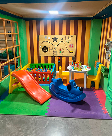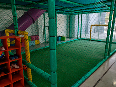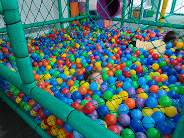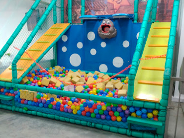 3. Estructura de juegos con toboganes y pelotero: La estructura principal del salón cuenta con emocionantes toboganes y un área de pelotero, donde los niños pueden trepar, deslizarse y sumergirse en una piscina de pelotas de colores. Además, hay diferentes niveles de actividades para que los más chicos se mantengan entretenidos durante toda la celebración.