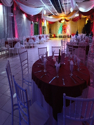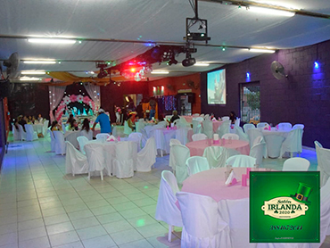 Salon IRLANDA(ex CANSULA) ubicado en Rodeito 2455 , en la entrada del Barrio Bicentenario, Alto Comedero, detrás de la Iglesia de la entrada, capacidad 150 personas, entre grandes y niños, ventilación natural. Mesas para 6 y 7 personas, manteleria y vajilla completa, individual por invitado; Mesa principal ornamentada con telón led, arco y pilares de globos, estructura de candybar vintage.