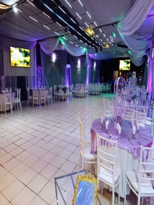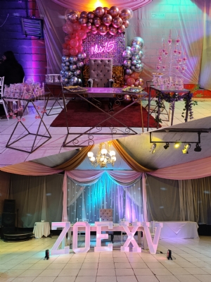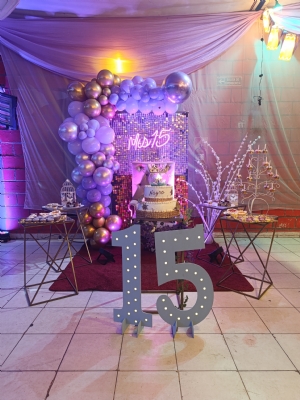Nuestros Servicios Mesa principal ornamentada con telon led, arco y pilares de globos, estructura de candy bar vintage. 3 horas y media de fiesta, te damos una hora previa y media hora posterior. Sonido e iluminación profesional, animación y protocolo , dj, videos musicales en dos pantallas gigantes, tik tok y karaoke, anfitrión en puerta, mozas, personal de cocina ( con certificacion de manipulacion de alimentos), personal de limpieza en baños y Salón, invitación virtual e historia de vida, cocina equipada, te preparamos las pizzas y los panchos, te calentamos las empanadas, te cortamos y repartimos la mesa dulce y la torta. Asadores y canchita de fútbol al aire libre, mesas en sector de espacios verdes. Sector parque de juegos: personal responsable, tobogán gigante, pelotero inflable, pelotero estructural, toro mecánico, grúa de golosinas, dos kiddies, tejo, pool, videojuegos y máquinas recreativas, aro de basquet, tobogán y mucho más. MEDIOS DE PAGO Efectivo, tarjetas de crédito y débito, mercado pago, transferencias bancarias. Área protegida por Sade y seguro de responsabilidad civil .