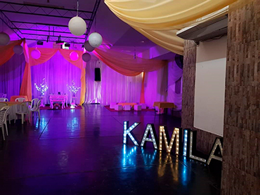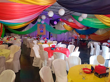 Cumpleaños Infantiles! Los servicios incluyen Salón con mesas, sillas y manteles Invitaciones Virtuales Ornamentado con telas Vajilla y Cocina Completa Letras con Luces para el Nombre del Cumpleañero Un Candy Bar Consulta por otros eventos