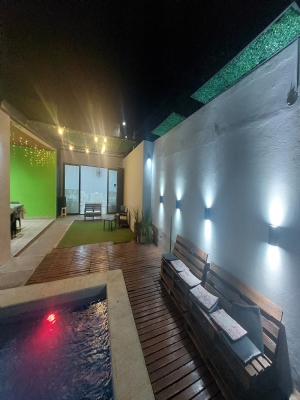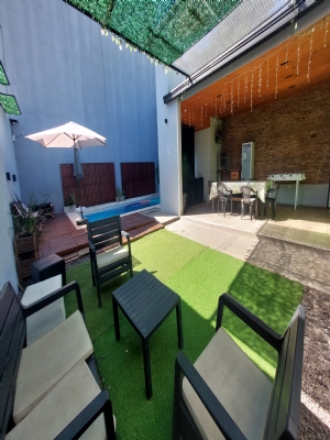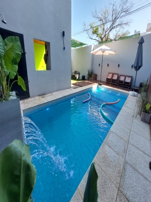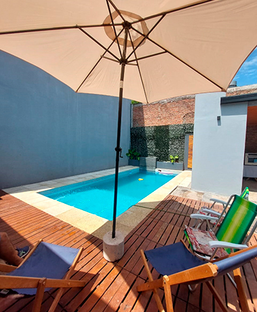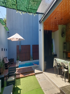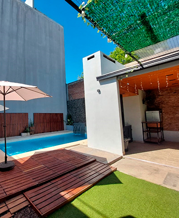 Bienvenidos a Nuestro Espacio para TODO tipo de Eventos Nuestro Servicio Incluye CAPACIDAD 55 PERSONAS (con niños inclusive) 55 sillas / 8 mesas 3 juegos de puff Incluye mantelería color a elección 2 Aire acondicionado y 3 Ventiladores 6 metros de aberturas en Blindex Candy bar básico en blanco + 1 mesa central + 1 pequeña + 1 bolsero + 1 cajón de regalo + 3 candy jars + 1 posa torta central Quincho con Parrilla techada con utensilios. Horno para calentar y derretir Piscina de 6mt x 3mt, cascada e hidros con estar en deck y sombrillas Patio con iluminación en guirnaldas Espacio de cocina con pava eléctrica, y utensilios varios. Descartables para torta GRATIS, en el espacio! Freezer y heladera exhibidora ! 2 juegos de Living de exterior Tres baños completos 3 silletas móviles Wifi en todos los espacios Equipo de sonido: 1 parlante móvil Cama elástica ( por 4hs hasta 10 años) Metegol y tejo en el espacio. Sin adicional Doble estacionamiento propio e iluminado Limpieza, sin adicional Consultar precios con decoración y mesas dulces con torta!! Anexos extras consultanos Área protegida FEMECHACO TURNOS y TARIFAs De Lunes a Jueves de 10hs a 17hs y de 18hs a 00hs Viernes, Sábados y feriados o para Feriado de 9hs a 17hs y de 18hs a 2am Domingo hasta 00hs (excepción Feriado) ABRIL / MAYO (mayo pileta cubierta) LUNES/JUEVES PROMOCIÓN TODO EL AÑO De 10:00 a 17:00hs DE 18,00 hs a 00hs $200mil de inversión Turno Completo $290 VIERNES, SÁBADO, DOMINGO, FERIADO y para Feriado. 9hs a 17hs (1er.T.) 18hs a 2am (2do.T.) 6hs $260 mil 8hs $270mil De inversión Domingo hasta 00hs Sábado / Domingo turno completos $390 horas a elección. FINANCIAMIENTO
