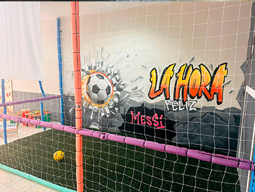 Bienvenidos al Salón Cumpleaños Infantiles! 🎈 Descripción del salón 🎈 Área principal de recepción y mesas: El salón cuenta con un espacio amplio y acogedor donde predominan los tonos neutros y la luz natural. Las mesas están distribuidas de manera que permiten tanto la interacción como la privacidad, decoradas con un estilo contemporáneo que combina lámparas colgantes elegantes y sillas modernas en negro. La pared con el cartel luminoso de "La Hora Feliz" crea un ambiente festivo y es un punto central ideal para fotos y videos, aportando un toque especial a cada evento. Zona de juegos y cancha de fútbol: Para los más pequeños, el salón dispone de una divertida área de juegos cubierta con césped sintético y redes de seguridad, donde pueden disfrutar de actividades deportivas como el fútbol en un espacio seguro y entretenido. Además, un imponente mural de "Messi" junto a la temática de fútbol les garantiza una experiencia llena de emoción y energía. Espacios recreativos adicionales: El área de juegos está equipada con estructuras para trepar, ideales para que los niños puedan liberar energía y explorar de manera activa y segura. El mobiliario, combinado con redes de colores, añade un toque vibrante y dinámico, invitando a los más chicos a disfrutar cada rincón de este sector diseñado especialmente para su diversión. En La Hora Feliz Eventos, cada rincón está pensado para que todos los asistentes, sin importar su edad, puedan disfrutar al máximo de cada celebración. ¡Te esperamos para que tu próxima fiesta sea todo un éxito! El Servicio Incluye Un asistente de cocina que calienta, prepara y emplata toda la comida, Bebida y cosas dulces. Dos camarero que atienden durante todo el evento, recibe a los niños y adultos, atiende mesas y coordina momentos de comida, panchos y la torta. Un animador que se encarga de los juegos y animación para niños y adultos. Acceso a balcones, sector fumadores. Invitaciones Virtuales Estructura para Candy. Canchita de fútbol. Zona blanda súper equipada/cuna para bebés. Sector fotos Escalador Pista de baile, pantalla y proyector Inflable, pelotero y metegol NO BRINDAMOS MENÚ PARA NIÑOS Importante! Podes ingresar al salón 30 min' antes con algún familiar para traer todo lo del cumple y poder armarlo. Finalizado el evento tenes también 30 min' para poder llevar todo. En total te brindamos 4 horas del salón a tu disposición. Consulta otros Combos Consulta por más combos y opciones para tú cumple ¡Recordá! Consultar disponibilidad para tú evento y reservar la fecha con anticipación.