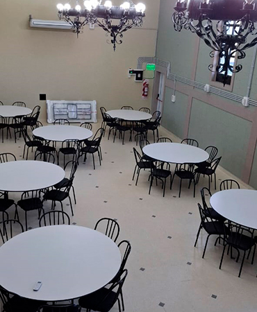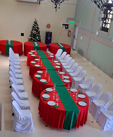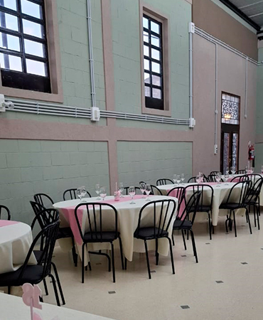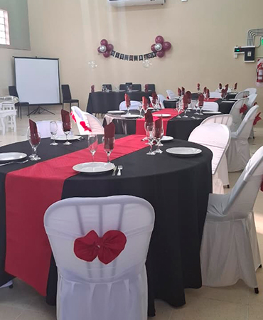 El área de mesas, con su mobiliario elegante y confortable, está dispuesta para que cada invitado disfrute de la celebración en un entorno cómodo. La disposición flexible permite adaptarnos a las necesidades de tu evento, ya sea íntimo o de gran magnitud.