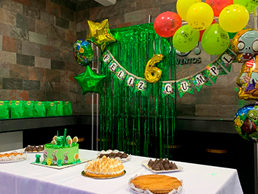 Cumpleaños Infantiles! Panchos, pizzetas, snack, gaseosas de primera línea, jugos Animación, personal de cocina y camareros Servicio de té, café agua caliente al momento de la torta Goodie bag para todos los niños invitados Invitaciones Virtuales Nuestro salón cuenta con Mega laberinto y juegos múltiples hasta 10 años. Zona blanda para los más chiquitos (cuando la edad así lo requiera). Metegol. Castillo inflable con tobogán Canchita de fútbol Zona de baile Pantalla y proyector Máquina de humo WIFI Vajilla y mantelería. Mesa exclusiva para candy bar/mesa dulce. Servicio de emergencias médicas. Espacio al aire libre, con armado de living y pérgola ¡Recordá! Consultar disponibilidad para tú evento y reservar la fecha con anticipación.