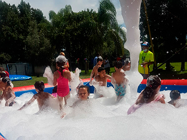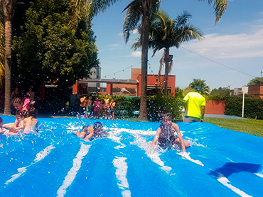 Válido de todos los dias de la semana sin comida . Incluye Animacion . Juegos . Profes . Jumping . Muro de escalada, giroscopio, canchas, boliche,,Tematica agua no está incluida.