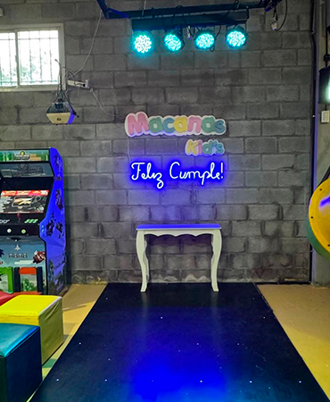 Bienvenidos al Salón Cumpleaños Infantiles! LA DIVERSIÓN PARA LOS CHICOS COMIENZA CUÁNDO LLEGAN A MACANAS KIDS 12 años de trayectoria avalan nuestra dedicación y compromiso con cada uno de nuestros eventos Nuestros Juegos Tobogán inflable gigante de 6 metros de alto Canchita de césped descubierta Inflable PEGAMOSCAS súper divertido Inflable carrera de obstáculos de 9 metros de largo con escalador y juegos internos Inflable de selva con tobogán y obstáculos Pelotero estructural de 3 pisos y pileta de pelotitas Juegos de maquinitas electrónicas Arcade Simulador de autos de carreras Sector de plaza blanda Juegos de plaza Sector de la casita Espacio de diversión para chicos y grandes con espejos deformantes Sector para maquillajes(se contrata aparte ) Espacio de diversión para chicos y grandes con tejo-sapo y metegol Aro de básquet Mangrullo con trepadora tobogán puente y sector de descanso Gran variedad de andarines para niños pequeños Sector de pista de baile Nuestro Servicio Incluye Personal que atiende a niños y adultos personal en los sectores de juego patio amplio patio de juegos totalmente cerrado sector de comedor de adultos con vista a los juegos de los niños y en cercanía a plaza blanda para poder disfrutar del juego de los más pequeños invitaciones virtuales Piñata sin relleno Carrito para presentación de souvenir y golosinero cocina con personal para calentar y servir la comida tanto a niños como adultos musicalización bolsita de pochoclos de souvenirs para los niños wifi servicios de emergencias el personal se encarga de atender a niños y adultos durante todo el evento,organizando el momento de la torta,la piñata y la salida y entrega de los niños a sus familias al finalizar el mismos NUEVO SECTOR De Canchita Consulta otros Combos Consulta por más combos y opciones para tú cumple ¡Recordá! Consultar disponibilidad para tú evento y reservar la fecha con anticipación.