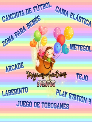 Bienvenidos a MAGICAS AVENTURAS. Queremos invitarlos a conocer nuestro salón y qué ustedes y sus agasajados disfruten de su evento. Les ofrecemos juegos, bailes, risas y mucha diversión. Recuerden reservar fechas con anticipación. Los esperamos!