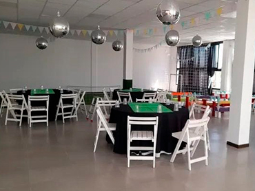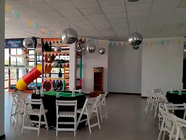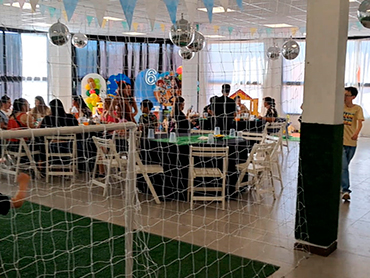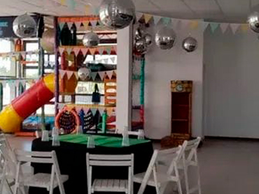 Bienvenidos al Salón Cumpleaños Infantiles! Nuestro Servicio Incluye 3:00hs de duración Personal de cocina para calentar Personal para supervisar los juegos Laberintos inflables Tejo y metegol Mini cancha de fútbol Pista de Baile Servicios Adicionales También podes contratar estos servicios adicionales Magos Payasos Animadora Y si desean nuestro catering Consulta otros Combos Consulta por más combos y opciones para tú cumple ¡Recordá! Consultar disponibilidad para tú evento y reservar la fecha con anticipación.