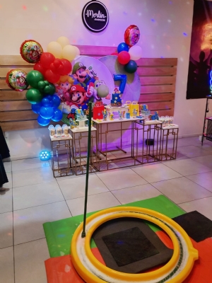 Promo 2hs económica Invitaciones Virtuales Servicio de Atención en Mesa hasta 20 Adultos Asistente de Cocina Animación Acorde a la edad hasta 20 niños Servicio de Té, Café y Maté ( consultar protocolo) Stand de glitter y tatoo temporal. Fondo decorativo de torta standard. Consultá por otros PAQUETES Menú Infantil (adicional) Sanck, pizza, nuggets, papas fritas y galletitas dulces Gaseosa primera línea. Jugos y agua Consultar opciones alternativas saludables. En Merlín siempre hay una propuesta lista para vos ✨ Te ofrecemos una gran variedad de opciones para que encuentres la que mejor se ajuste a tu idea y a lo que estás buscando. Y si querés algo distinto, ¡escribinos y armamos juntos el evento perfecto! 🎉 Servicios Generales Mantelería en Mesas y Sillas Vajilla y Descartables Emergencia Médica Wifi Sector de Juegos Mesas para Candy Bar Estructuras para Candy Bar Sillón para Homenajeado Grupo Electrógeno Barra Espacio Exterior Pista de Luces Audiorítmicas Musicalización Máquina de Humo Máquina de Burbujas Pantalla y Proyector Sector Fumadores Baño Apto para Movilidad Reducida Salida de Emergencias Cámaras de Seguridad Climatización Instalaciones Cama Elástica Canchita Tejo Metegol Palestra en Interior Spa de glitter PlayStation Sapito Minimercadito y Minicocinita Plaza Blanda con Rodados Tobogán apto deambuladotes Tirolesa ¡Recordá! ¡Asegura que tu evento sea inolvidable! 🎉✨
