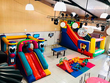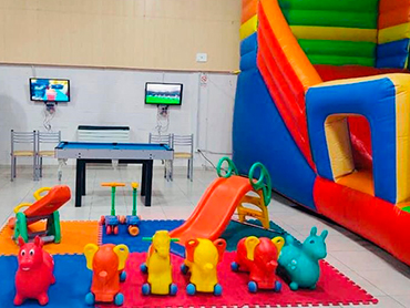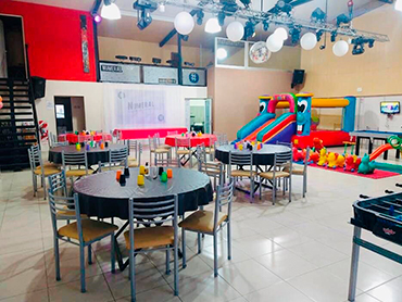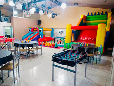 Cumpleaños Infantiles! El Servicio BÁSICO incluye: Invitaciones Virtuales Turno de 2:30hs Uso de las instalaciones Cocina equipada con Horno, Heladera, Frezzer Equipo de mate Globos Material de mesa descartable Juegos Inflable Plaza Blanda Metegol Mini Pool Video Juegos Importante: El servicio básico no incluye combos ni comida. No se permite llevar ni consumir bebidas alcohólicas No se permite papel picado Combos Opcionales: (Consultar precios) COMBO 1: Servicio básico + Snacks + 15 litros de gaseosa línea Coca-Cola COMBO 2: Servicio básico + Combo 1 + 30 Chips + 30 panchos (no incluye aderezo) ¡Recordá! Consultar disponibilidad para tú evento y reservar la fecha con anticipación.