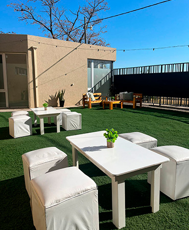 Cumpleaños Infantiles! El uso exclusivo del salón por 3 horas. Diferentes espacios para adaptar tu fiesta. Coordinación general del evento. Capacidad del 100% (100 personas) interior y exterior. Climatización frío- calor. Juegos de livings. Proyector y pantalla. Sonido e Iluminación. Menú especial para niños y niñas. (tutucas, puflitos de colores, patitas de pollo, pizzas y frutas de estación) Personal de cocina. Un mozo hasta 25 adultos Mantelería. Vajilla estilo lunch. Propuestas de Animaciones Una salita especial llena de juegos de roles, como mercaditos, la cocina, mesa de herramientas, kiosco de helados y mucho más. Búsquedas del tesoro Animación con Burbujas Gigantes. Talleres (a elección) Reciclado, Arte y Masa Cocina Jardinería - Deco de macetas y armado de plantines ¡Recordá! Consultar disponibilidad para tú evento y reservar la fecha con anticipación. Te esperamos, vení a conocernos.