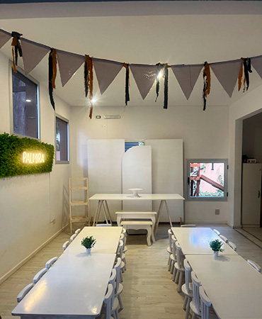 En Palmira, casa de eventos, creamos un espacio orientado a eventos infantiles y reuniones familiares. Con una propuesta original para el entretenimiento de las infancias. Contamos con un ambiente estético, simple, con juegos y actividades que permiten una experiencia para divertirse de manera creativa y libre. Te esperamos para mostrarte todos los rincones de nuestro hermoso espacio y contarte sobre nuestras propuestas.