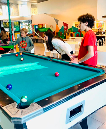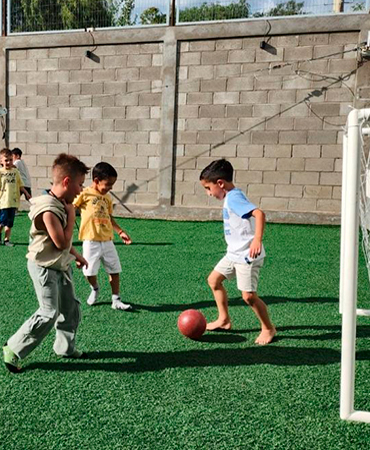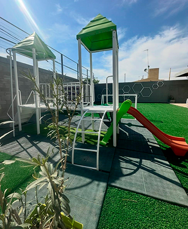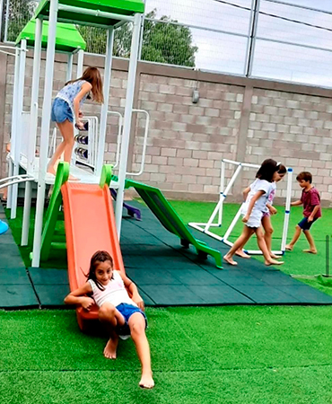 Para quienes disfrutan del aire libre, tenemos juegos al aire libre sobre césped sintético, equipada con Mangrullo, Tirolesa, Cancha de fútbol, Juegos de sillones.