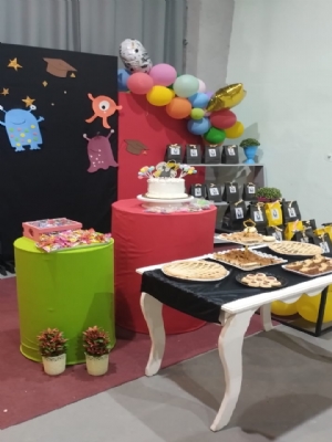 Bienvenidos al Salón Cumpleaños Infantiles! Nuestro Servicio Incluye Espacio para 25 niños: Laberinto de enredos en alturas Sector saltarines para los más pequeños Pizza bar cocineros Rincón de piruetas Espacio atletas (fútbol, básquet, juegos de animación) 3 horas con exclusividad en todo el salón. Espacio confortable para 25 adultos. Paneles para decoración de diferentes tamaños, mesa básica de torta y mesitas auxiliares (decoración cliente). Coordinador ayudante de evento (no cocina, ni corta). Espacio al aire libre, mini patio. Cocina equipada con horno y pava eléctrica, vajilla a disposición del evento. Heladera con bebida a disponibilidad del cliente, una vez finalizado el evento se paga lo consumido, Prohibido el ingreso de bebidas al local. Se ofrecen primeras marcas. Fuentes para Candy bar y alzada de torta. ELÉCTRICOS Y UTENSILIOS A DISPOSICIÓN Cocina equipada con horno y pava eléctrica. Vajilla a disposición del evento (platos, bandejas, vasos, jarras, utensilios varios). Heladera con bebida a disponibilidad del cliente, reembolsable lo consumido. SEÑAS Y RESERVAS Las reservas se toman con seña de $30.000 (no reembolsable). La seña no congela el precio. El pago total del evento debe hacerse 10 días antes. Descuento en COMBOS pagados en efectivo. CONSIDERAR No se acepta el ingreso de bebidas en el local. La capacidad máxima debe ser respetada, cualquier adicional implica costo extra de $10.000 por persona (ADULTO O NIÑO). Tolerancia de permanencia en el local de 15min antes y al finalizar el evento. Prohibido el ingreso de mascotas, papel picado, serpentina, cascada de chocolate o helados. Prohibido pegar cosas en las paredes. Por corte de luz, ajeno al salón durante el evento no se suspende ni se reprograma. Si el corte de luz fuera anterior al inicio se puede reprogramar. El salón no se responsabiliza por objetos perdidos. Al sector de cocina solo pueden ingresar 2 adultos. HORARIOS MARTES A JUEVES 18:00 a 21:00hs VIERNES 14:00 a 17:00hs 18:00 a 21:00 hs 22:00 a 01:00hs SÁBADOS 10:00 A 13:00hs 14:00 a 17:00hs 18:00 a 21:00hs 22:00 a 01:00hs DOMINGOS y FERIADOS 10:00 A 13:00hs 14:00 a 17:00hs 18:00 a 21:00hs Consulta otros Combos Consulta por más combos y opciones para tú cumple ¡Recordá! Consultar disponibilidad para tú evento y reservar la fecha con anticipación.