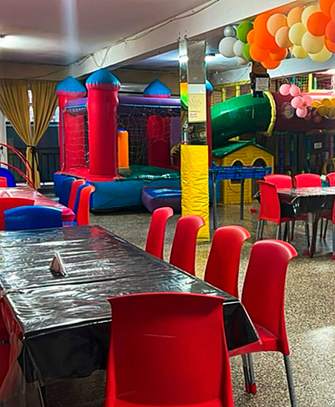 ¡La diversión está garantizada! Contamos con un sector de juegos infantiles que incluye un inflable colorido, toboganes y un laberinto de aventuras para que los niños disfruten al máximo en un entorno seguro y adaptado para ellos.