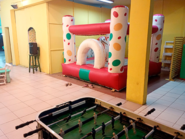 Bienvenidos al Salón Cumpleaños Infantiles! 🎈 Descripción del salón 🎈 Zona de Juegos: Una estructura de juegos ideal para los niños más activos, con redes de seguridad y coloridos tubos que crean un espacio protegido para que los peques corran, trepen y se diviertan sin parar. Además, está decorada con cintas que aportan un ambiente festivo y alegre. Tejo y Metegol: Para los amantes de los desafíos, tenemos una mesa de Tejo y Metegol diversión asegurada para los peques y los papás. Inflable: Saltar, jugar y divertirse es nuestra prioridad, por eso te brindamos dentro de todos nuestro juegos nuestro inflable, porqué saltar de alegría es lo más lindo. Con espacios pensados para todas las edades y actividades que aseguran horas de entretenimiento, Punto Diversión Salta es el lugar donde la imaginación y la diversión no tienen límites. ¡Te esperamos para crear juntos momentos mágicos! 🎈 Incluye Invitaciones Virtuales Mesas y sillas con capacidad hasta 50 personas. Ambiente climatizado. Cocina equipada con Freezer, heladera, hornallas, vajillas etc. Juegos: pelotero estructural e inflables, metegol, tejo, play, plazas blanda, cancha de fútbol entre otros. Parlante para poner música por Bluetooth. Personal para atención de la mesa y cuidado de los niños. Consulta otros Combos Consulta por más combos y opciones para tú cumple ¡Recordá! Consultar disponibilidad para tú evento y reservar la fecha con anticipación.