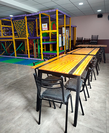 Bienvenidos al Salón Cumpleaños Infantiles y de adultos! 🎈 Descripción del salón 🎈 Zona de juegos principales Rincón de Juegos/Plaza blanda Cancha al aire libre Salón para adultos Nuestro Servicio Incluye 1 Asistente de cocina 2 Camareras Música de ambiente Servicio de agua caliente Ambiente climatizado ❄️🌡️ Wi-fi Servicio de emergencia 🚑 Nuestros Juegos Laberinto con tirolesa Plaza blanda Castillos inflables Cancha de fútbol/basket Mesa de ping pong Cama elástica Metegol Tejo Juego del sapo Fichines con 3000 juegos (arcades) Juegos al aire libre Consulta otros Combos Consulta por más combos y opciones para tú cumple ¡Recordá! Consultar disponibilidad para tú evento y reservar la fecha con anticipación.