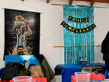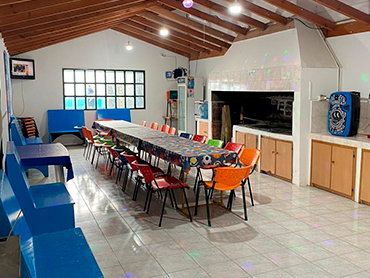 Bienvenidos al Salón Cumpleaños Infantiles! Incluye 🎉servicio de 3 horas capacidad del salón para 30/40 personas Cancha de fútbol de césped sintético ⚽️ Metegol Cocina anafe Pava eléctrica Horno pizzero 🍔parrilla y Asador 🎈Mantelería Mesas y 35 Sillas en el quincho Equipo de música para conectar Bluetooth Limpieza del salón, papel higiénico y bolsas de residuos en los tachos Heladera exhibidora Consulta otros Combos Consulta por más combos y opciones para tú cumple ¡Recordá! Consultar disponibilidad para tú evento y reservar la fecha con anticipación.