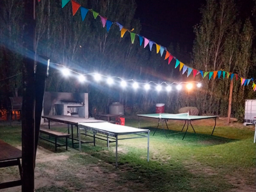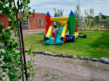 Bienvenidos al Salón Cumpleaños Infantiles! 🎈 Descripción del salón 🎈 ¡Celebra con nosotros, recuerda para siempre! El Servicio Incluye Cuenta con salón para 40 personas. Fogón interior Un hermoso y amplio espacio verde Fogón completo al aire libre con parrilla, asador y disco Freezer grande Heladera Cocina y horno pizzero piscina no climatizada Mesa de ping pong Cancha de Fútbol Mete gol Hamacas Sube y baja Castillo inflable Equipo de sonido Debe responsabilizarse del buen uso y cuidado de espacio verde Horarios Horarios disponibles lunes a sábado de 15 a 23 hs. Horario domingo de 10 a 23 hs. Disponible todos los días de la semana. Nos ubicamos en km17 No se aceptan mascotas Importante Se cobra un adicional de $20.000 de los cuales si no hay rotura, mal uso de las instalaciones, exceso de desorden y daños evitables. Se reintegra hasta $10.000 y lo otro son para la limpieza. O sea que usted no debe levantar y limpiar a la hora de retirarse. Si se les pide que mantengan el cuidado y el orden. Consulta otros Combos Consulta por más combos y opciones para tú cumple ¡Recordá! Consultar disponibilidad para tú evento y reservar la fecha con anticipación.