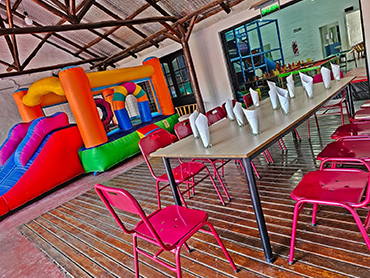 Para que tu hijo/a tenga una fiesta inolvidable contamos con un amplio espacio de juegos para que los niños tengan diversión asegurada