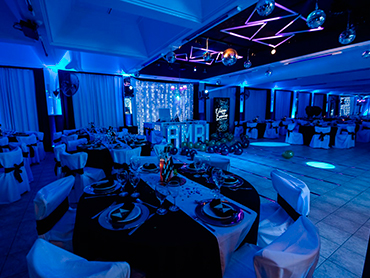 1. Escenario principal y área de recepción: 2. Salón comedor y mesas de invitados: 3. Pista de baile y sector de entretenimiento: Cada sector del salón está cuidadosamente diseñado para adaptarse a cualquier tipo de evento, brindando comodidad, elegancia y diversión. En Eclipse Eventos, creamos el ambiente perfecto para que tus momentos especiales brillen con luz propia. ¡Te esperamos para hacer realidad el evento de tus sueños!Descripción por sectores del salón: