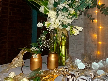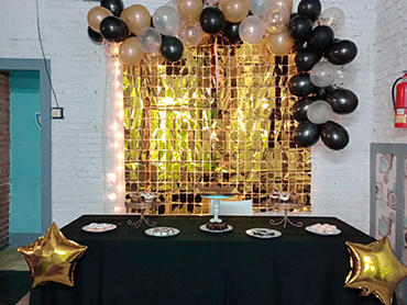 3 Horas 2 Camareras 1 Coordinador Mantelería (mantel blanco y cubre de color, lazos en las sillas) Vajilla de loza Copas de agua y brindis Pantalla Cafetería Promo para 15 chicos y 40 adultos Adicionales Animación de adultos Shows musicales