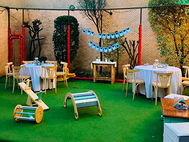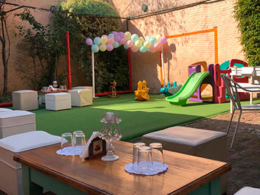 Te ofrecemos: 3 hs de evento Promos de hasta 30, 45 ó 60 adultos Servicio de camareras Servicio de vajilla de losa completo Uso de todas las instalaciones, equipos y juegos del salón Uso de la parrilla Música funcional Además ofrecemos servicio de cátering (lunch, pizza party y menú de parrilla) Armado de mesas dulces y candy bar