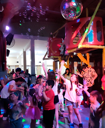 PROMO MULTIEVENTOS! TE OFRECEMOS - Hasta 48 personas adultas (6 mesas de 8 personas c/u) - Hasta 10 chicos (no incluye bebes) - Coordinador para los diferentes momentos del evento, juego con los adultos y chicos, baile y atención de los chicos durante la comida. - Personas para atención de los adultos. - Vajilla completa para lunch con plato de porcelana tamaño postre, copas (incluyendo copas para brindis) y mantelería color a elección (lila, fucsia, celeste, rojo, verde manzana, maíz) en todos los casos con fondo blanco. - Disco y música durante todo el evento. - Reproducción automática de fotos en LCD. - Servicio de Video (proyección) - Invitaciones. - Piñata con caramelos, Bolsitas Souvenir (no aplicable en comuniones y civil) - Ambientación temática en columnas acorde al evento. (consultar disponibilidad) MENÚ INFANTIL - Palitos, Papitas y Chizitos. - Panchos. - Pizzetas. - Agua mineral, gaseosa Línea Coca Cola y Jugos. PARA LOS ADULTOS - Servicio de cafetería y mate. CONTAMOS CON - Grupo Electrógeno. - Emergencias médicas - Habilitaciones y seguros. - Ambiente Climatizado – Internet. - Espacio al aire libre con mesas y bancos. - Metegol y juegos de mesa.