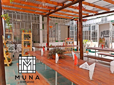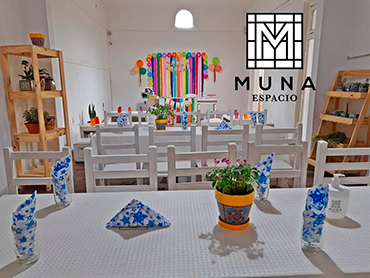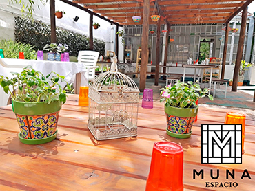 Muna es un espacio donde tu evento es especial. Tiene el encanto y la calidez de una casa, con sus amplios y luminosos ambientes; junto a sus rincones acogedores. Se encuentra exquisitamente decorada, cuidando de todos los detalles. Cuenta con un amplio espacio al aire libre, para disfrutar del sol o una noche estrellada. Todo se conjuga con su funcionalidad, adaptándose así a todo tipo de eventos.