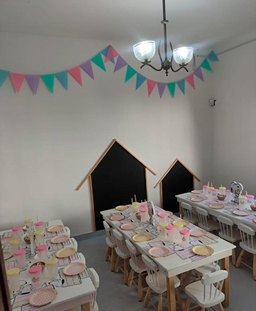 Nuestra fachada conserva la esencia histórica y elegante de la ciudad de Rosario y el interior revela un espacio cálido y especial para festejar Cumpleaños Infantiles, Bautismos, Comuniones, Baby Shower, Cumpleaños para adultos y otros eventos sociales.