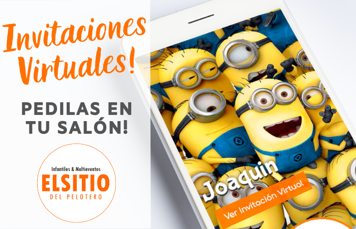 No dejes de Sorprender a tus invitados, enviales tus invitaciones virtuales interactivas de elsitiodelpelotero®. Envialas instántaneamente por Whatsapp, son personalizadas y permitirán a tus invitados poder confirmar la asistencia a la fiesta de tu hijo, agendarlas en su celular automáticamente y guiarlos hasta el salón por medio del GPS. Todos peloteros, salones de fiestas infantiles de Catamarca utilizan las Invitaciones Virtuales de elsitiodelpelotero®